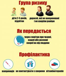 Найчастіше хворіють діти, які не отримали другу дозу КПК вчасно. У рамках посиленої імунізації станом на 10 січня частка дітей, які отримали пропущену першу дозу КПК, становить 56,6 % (найменше — у Черкаській, Чернівецькій, Тернопільській, Івано-Франківській та Закарпатській областях). А частка тих дітей, які надолужили дві дози, іще менша — 46,2 % (найменше — у Львівській, Тернопільській, Чернівецькій, Закарпатській та Івано-Франківській областях). Ризик захворіти збільшується і через спільне перебування дітей у школах та дитячих садках. Тому дуже важливо, щоб діти були вчасно щеплені за Календарем профілактичних щеплень.